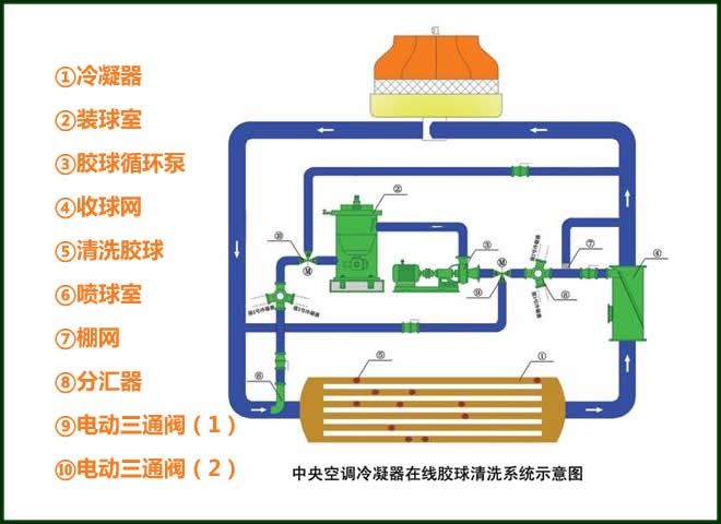采用了VBT系列膠球清洗裝置可以使貴方的中央空調(diào)系統(tǒng):